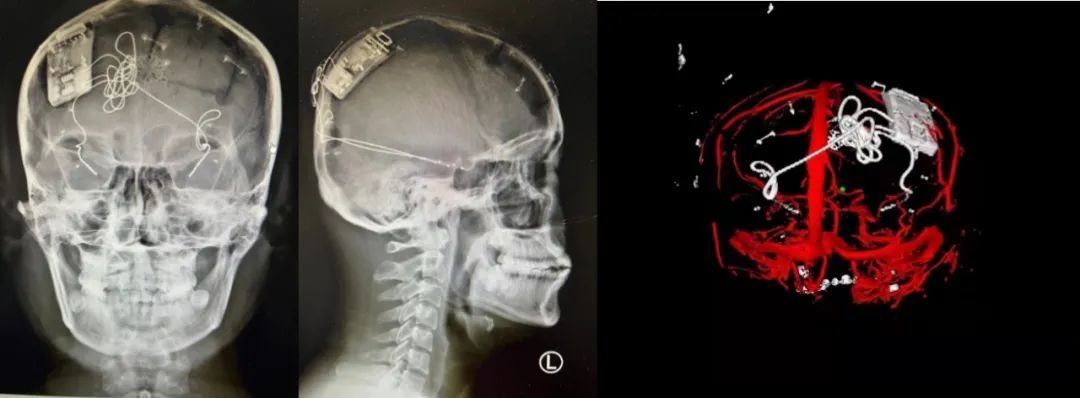 本次手術過程順利,術中刺激器各項指標均工作正常,術后重建顯示電極位置精準,腦電信號清晰?;颊邽槟行?,入院后診斷為雙側顳葉癲癇,此類癲癇為開顱手術的相對禁忌癥,在藥物無法控制的情況下,傳統治療效果欠佳 。