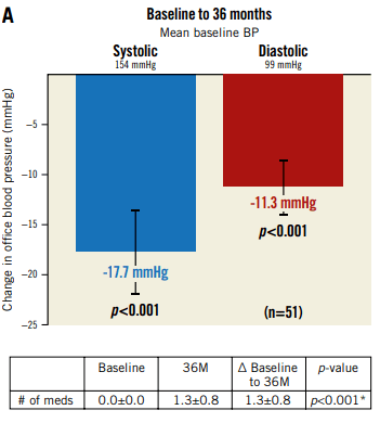 △ 試驗(yàn)結(jié)果:RDN組患者在12個(gè)月內(nèi)服用較少藥物的情況下維持了良好的降壓效果(–16.5±12.9)mmHg