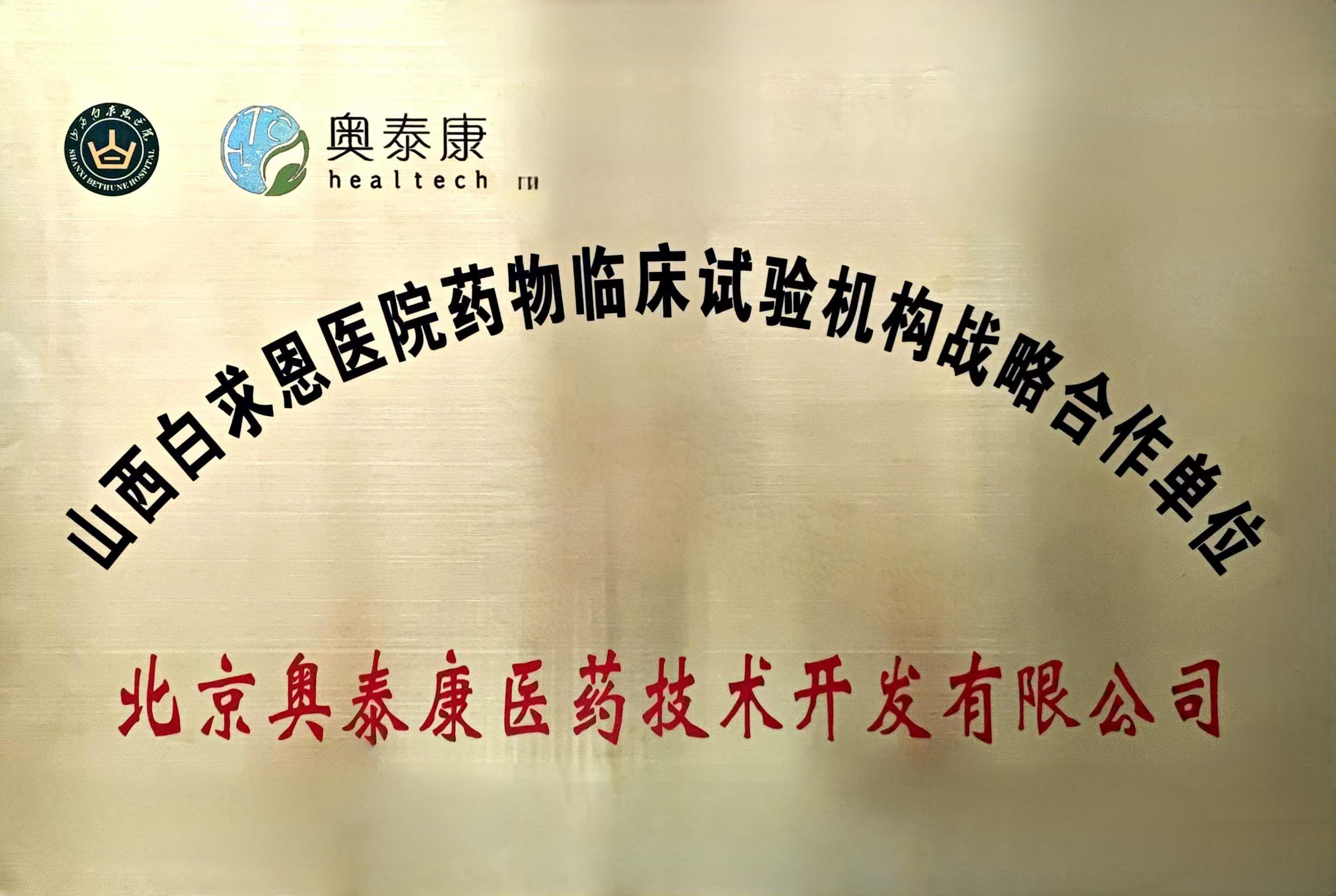 山西白求恩醫(yī)院在山西省委省政府的高位推動下,作為國家區(qū)域醫(yī)療中心進行重點建設。其藥物臨床試驗機構是山西省藥理學會藥物臨床試驗主委單位,承擔著提高山西省藥物臨床試驗整體研究水平、保障省內(nèi)藥物臨床試驗項目質量管理規(guī)范化的重務。此次奧泰康獲得山西白求恩醫(yī)院“戰(zhàn)略合作單位”的授牌,標志著雙方的合作關系再上一個臺階,雙方將進一步展開多維度的深入合作,共同推動中國臨床研究事業(yè)的發(fā)展。
