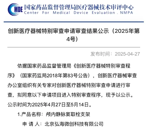 近日,我司自主研發(fā)的腦靜脈介入治療產(chǎn)品顱內(nèi)靜脈竇取栓支架,已正式進入國家創(chuàng)新醫(yī)療器械特別審批程序(綠色通道)! 這是對我們團隊技術(shù)實力與臨床價值的權(quán)威認可,也標志著中國腦靜脈疾病治療邁入全新階段。