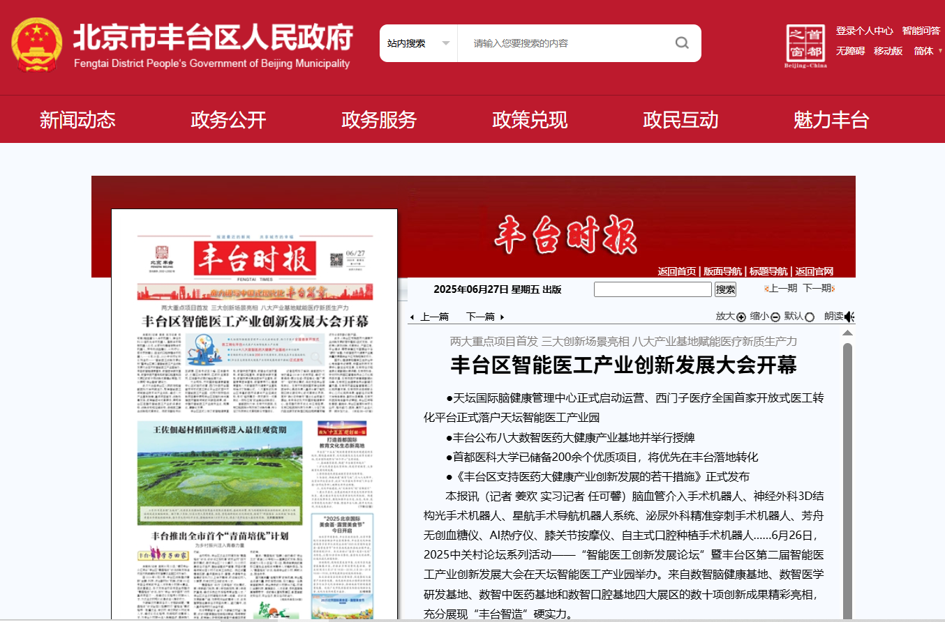 6月26日,由豐臺(tái)區(qū)人民政府、首都醫(yī)科大學(xué)舉辦的中關(guān)村論壇系列活動(dòng)“智能醫(yī)工創(chuàng)新發(fā)展論壇”暨豐臺(tái)區(qū)第二屆智能醫(yī)工產(chǎn)業(yè)創(chuàng)新發(fā)展大會(huì)在北京順利舉辦,此次大會(huì)聚焦智能醫(yī)工領(lǐng)域前沿技術(shù)與產(chǎn)業(yè)實(shí)踐,通過(guò)八大產(chǎn)業(yè)基地授牌、重點(diǎn)項(xiàng)目首發(fā)、創(chuàng)新場(chǎng)景發(fā)布、政策解讀與成果展示,展現(xiàn)豐臺(tái)區(qū)在推動(dòng)智能醫(yī)工產(chǎn)業(yè)的資源優(yōu)勢(shì)、創(chuàng)新優(yōu)勢(shì)和空間優(yōu)勢(shì),促進(jìn)醫(yī)工融合創(chuàng)新和成果轉(zhuǎn)化。北京市政府副秘書(shū)長(zhǎng)王穎捷,區(qū)委書(shū)記王少峰,區(qū)委副書(shū)記、代理區(qū)長(zhǎng)張艷林,區(qū)政協(xié)主席李嵐,區(qū)委副書(shū)記蔣達(dá)峰,首席科學(xué)家毛山宏等領(lǐng)導(dǎo)出席會(huì)議。