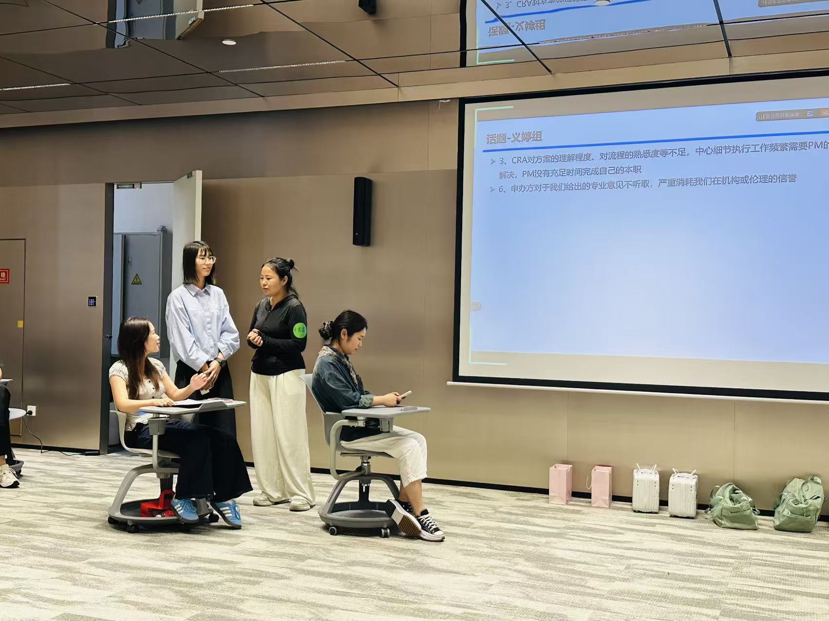 有效的溝通是團隊協(xié)作的基石。本次培訓引入了“非暴力溝通”理念,通過情景模擬與案例分析,幫助學員掌握傾聽、表達與反饋的技巧,減少人際沖突,提升團隊凝聚力。通過不同情節(jié)的生動演繹,團隊成員詮釋出日常工作中的各種棘手問矛盾,許多學員表示,這一環(huán)節(jié)讓他們重新審視了溝通方式,學會了如何以更平和、高效的方式解決工作中的矛盾。這不僅是一種技巧,更是一種修行,它能幫助我們化解與研究者、受試者或團隊成員間的潛在沖突,營造和諧、高效的工作氛圍。
